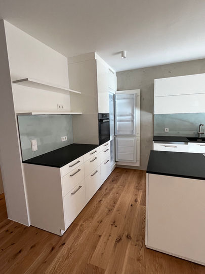 – moderne, maßgefertigte Küche mit Küchenblock